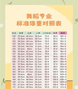舞蹈编导和舞蹈学专业标准身高在160以上,舞蹈表演专业身高在165cm以上。一般对应的体重是身高160cm—体重90-95斤、身高165cm—体重93-98斤、身高170cm—体重96-105斤。