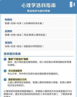 因此,同学们想要学心理学:“尽量选物理,那样97%的高校将任你选择”另外,选科时不光要关注高校专业的选考要求,更应结合自己的兴趣、学科排名、高中办学特色、地区文化等等。