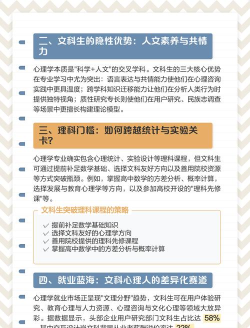 对于心理学专业的学生来说,需要了解相近专业的一些原理知识,同时要了解国家法规和知识产权的了解,心理学的一些前沿应用和发展动态,这样在市场上能够更具竞争力,以扎实的论文学术交流能力,能够使得毕业生在市场上找到符合自己的工作,就业的渠道要更加拓宽。