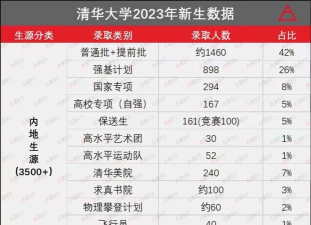 根据统计,2021年清华大学录取的新生中,普通批和提前批录取约1400人,仅仅占总录取人数的40%,而强基计划和国家专项、高校专项计划录取1400多人。除此之外保送生、高水平艺术团和高水平运动队以及数学英才班和领军班等有300多人。