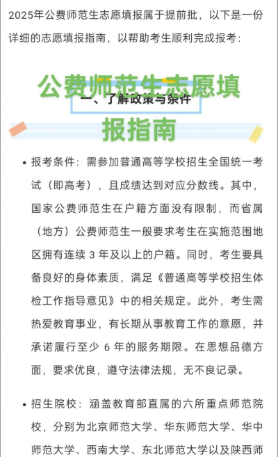 公费师范生报名流程1、报名登记2、志愿填报3、文化考试4、投档录取5、协议签订6、报到注册公费师范生实行的是提前批次录取,考生只需要在提前批志愿中填报公费师范生即可。考生不需要单独报名。