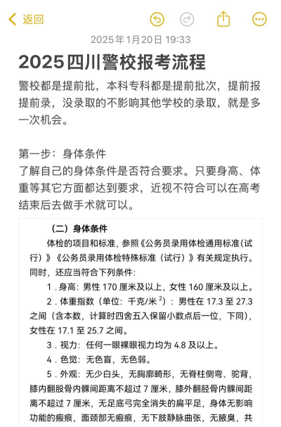 一般来说,想要报考警校,除了有文化课的基础知识以外,还必须对身体挑战做严格的要求,也就是在高考之后,警校会对拟录取的考生进行统一体检,最终能否合格是以体检的结果作为最后的标准。
