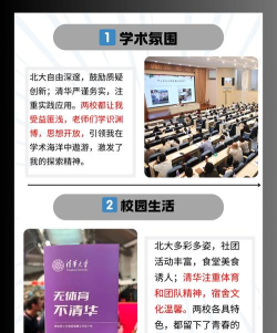3、文化不一样:清华大学的学风是严谨、勤奋、求实、创新,校风是行胜于言。北京大学的文化则主要是北大精神,即“继承爱国、进步、民主、科学的光荣传统,弘扬勤奋、严谨、求实、创新的优良学风,秉承思想自由、兼容并包的学术精神”,体现了百余年来北大人立学、办学、求学、治学的价值追求。