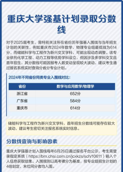强基计划入围分数线于高校招生投档线类似,是根据高校招生计划按照一定入围比例划定入围名单,最后一名入围者的分数即为强基入围分数线。从2022年大部分强基计划院校的入围分数线来看,入围分数线高一点的院校在650分左右,低一点的院校在560分左右。